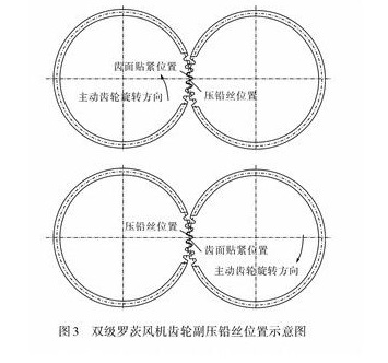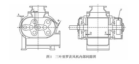 羅茨鼓風(fēng)機(jī)的葉輪與葉輪之間及葉輪與機(jī)體之間存在相對運(yùn)動,處于非接觸狀態(tài),必須有合適的工作間隙,才能保證既有密封作用又能使風(fēng)機(jī)正常運(yùn)轉(zhuǎn)。