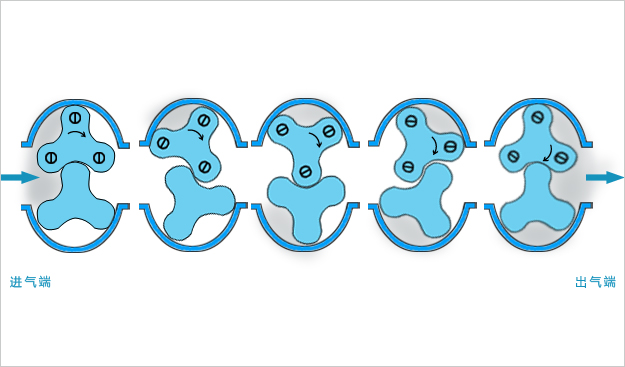 羅茨風(fēng)機的具體的工作原理流程請看下圖: