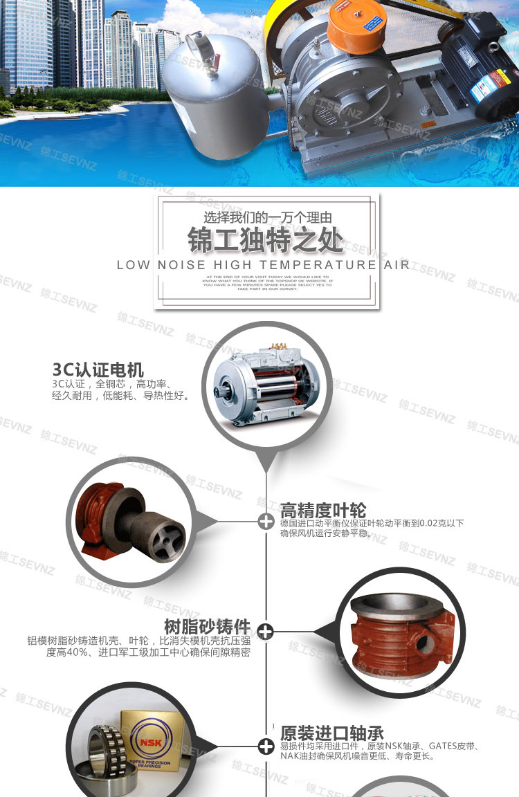 錦工回轉鼓風機特點: